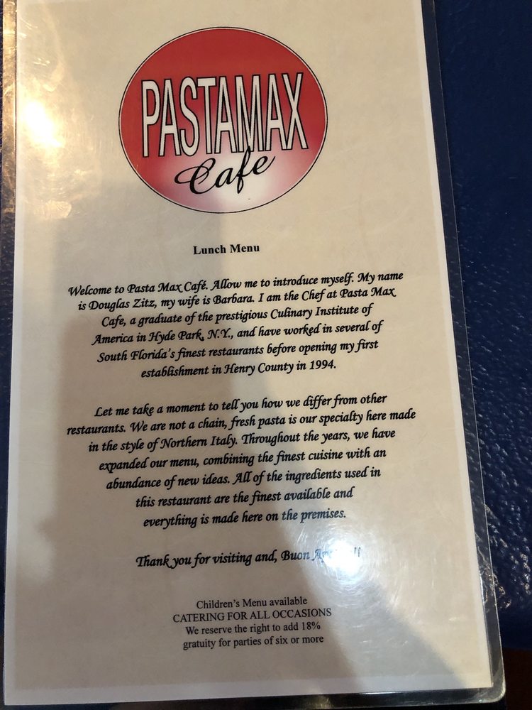 Introducing the menu at Pasta Max Cafe, a hidden gem in downtown McDonough, Georgia, specializing in authentic Italian cuisine. With a warm and welcoming atmosphere, Pasta Max offers a variety of dishes that are sure to satisfy any Italian food lover. From homemade pastas to delicious soups and pizzas, the menu at Pasta Max has something for everyone. Customer reviews rave about the great food, service with a smile, and welcoming atmosphere. Highlights include the Black Pepper Pappadelle, chicken breast over pasta with lemon and capers, and the addicting rolls served with every meal. With options for vegetarians and a cozy, intimate dining area, Pasta Max Cafe is a must-visit for those looking for a delicious Italian meal in McDonough.